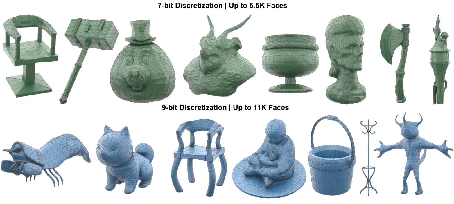 An autoregressive artistic mesh generation method that retrieves the next token from a dynamically growing tree structure. It achieves a state-of-the-art compression rate.
